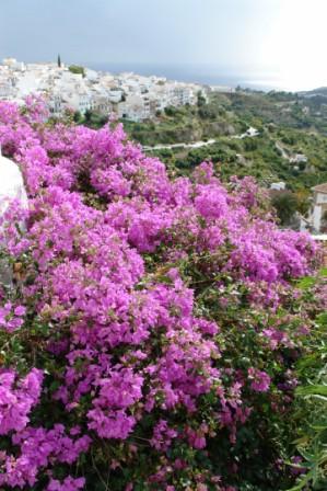 Der wahrscheinlich schönste 180-Grad-Ausblick von der Terrasse über das malerische Städtchen Nerja hinweg, in die Ausläufer der Berge bis in's Meer hinaus.